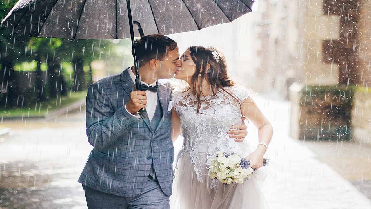 כדאי לבחור צלם חתונות שמוכן לעבוד בתנאי מזג אוויר גשומים. יש לוודא כי יש לצלם שלך ציוד צילום עמיד למים; מצלמה, חצובה וכו'…יש צלמים שלוקחים את זה בקלות ומשתמשים בגשם כדי ליצור כמה תמונות מדהימות באמת. ישנם גם מקרים שבהם הם הולכים עם הזרם ומשנים את התוכניות שלהם כדי לוודא שהלקוח שלהם יזכה לחוויה בלתי נשכחת. צלמים משתמשים לרוב במטריות, מעילי גשם, מצלמות אטומות למים ואפילו ביגוד עמיד למים כדי לעבור את היום.